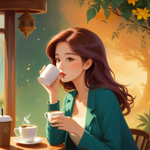 a painting of a woman drinking a cup of coffee