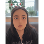 a drawing of a girl in a blue shirt