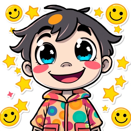 A anime mix race boy in hoodie is light blue background is stars