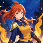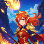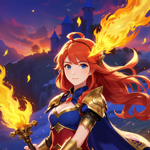 a woman with red hair holding a sword