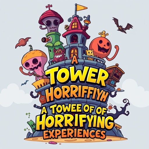 Make a cool picture saying A tower of horrifying experiences in cool writing and no person
