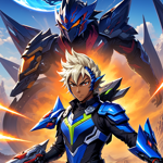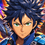A anime mix race boy in hoodie blue background stars