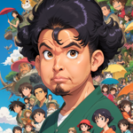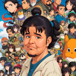 a caricature of a man in a green shirt