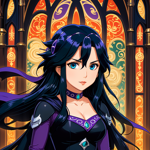 a woman with purple hair and a green shirt