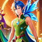 a beautiful blonde fairy in a blue dress