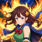 a woman in a red cape holding a fire ball