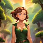 a girl in a green dress holding a sword