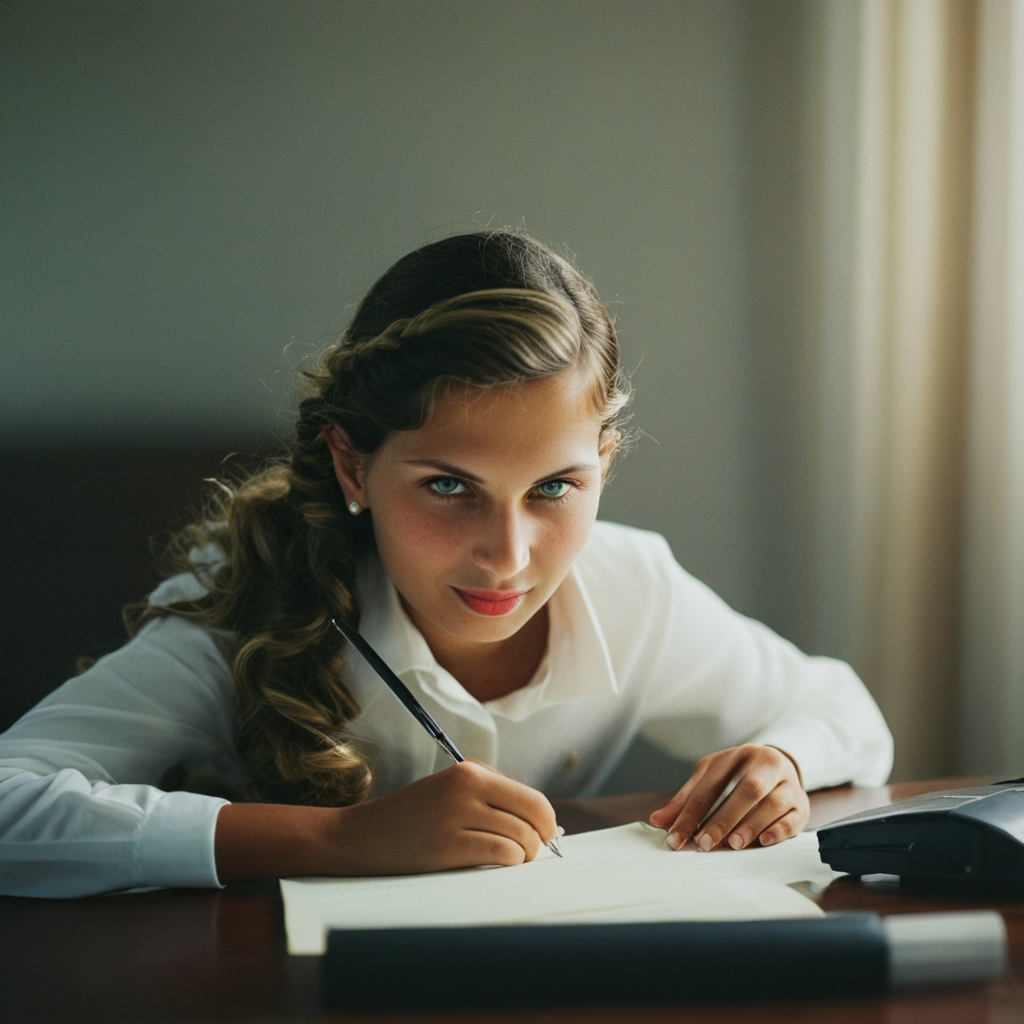 a girl is writing on a piece of paper