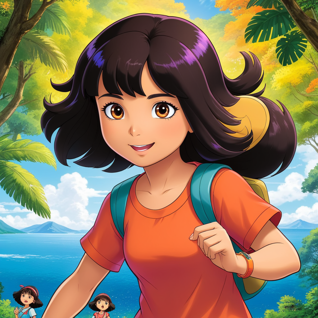a cartoon girl with blue hair and blue shoes