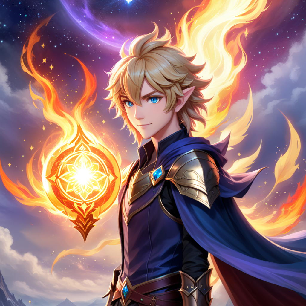 a man in a blue cape holding a golden object