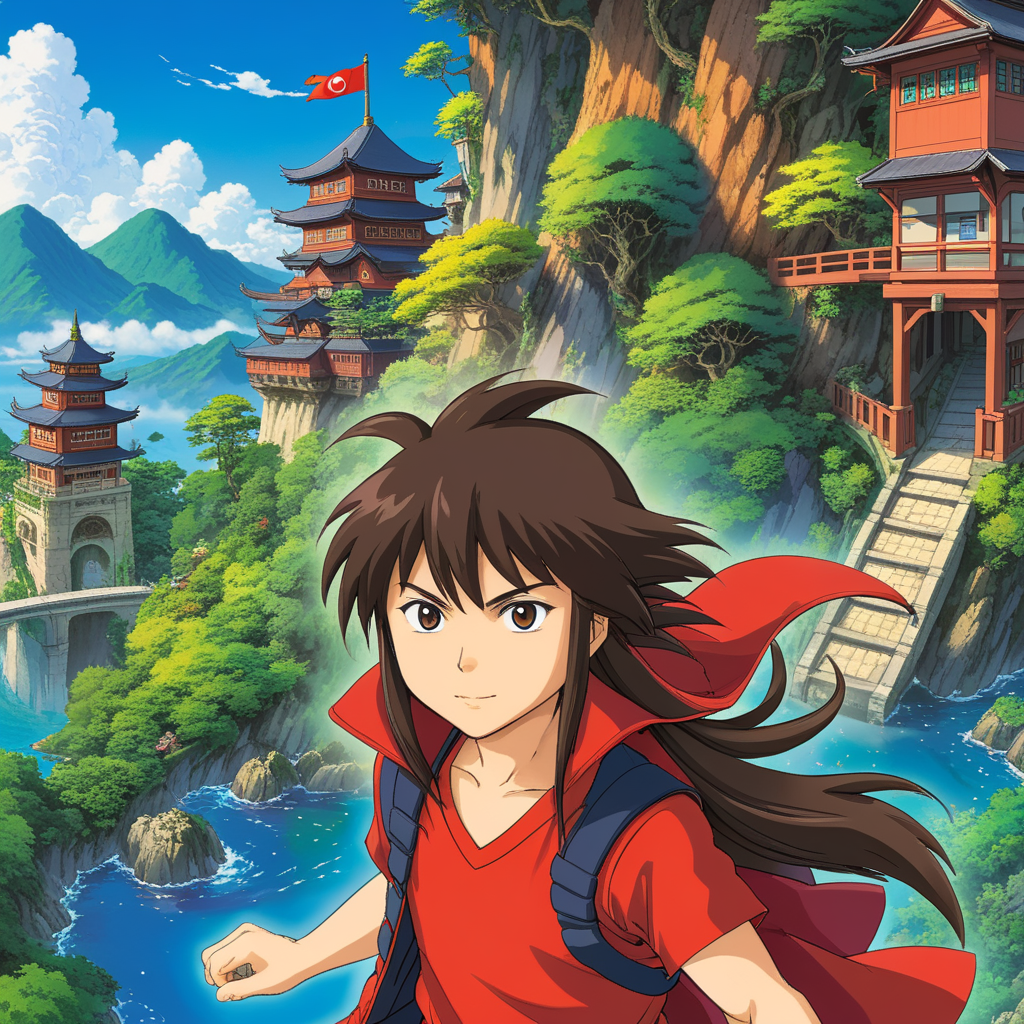 a girl in a blue shirt and red bow tie standing in front of a forest