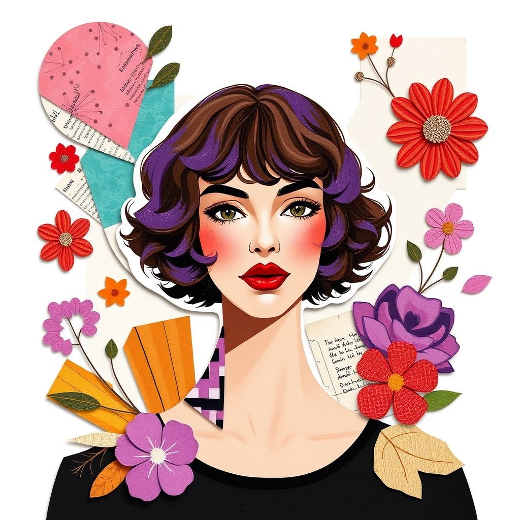 Women with short curly purple brown hair and big chest