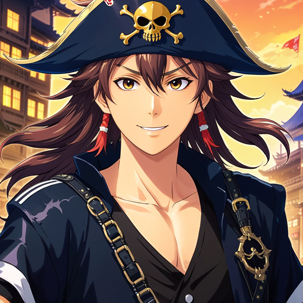 a woman in a pirate hat with a sword