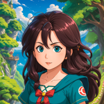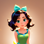 a cartoon girl in a green dress with a bow on her head
