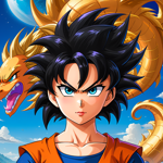 a cartoon character with a dragon on his head