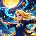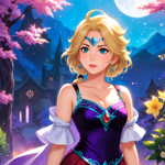 a cartoon of a woman with blonde hair and blue eyes