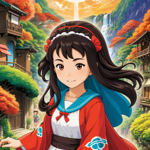an anime character with blue hair and a smile on her face