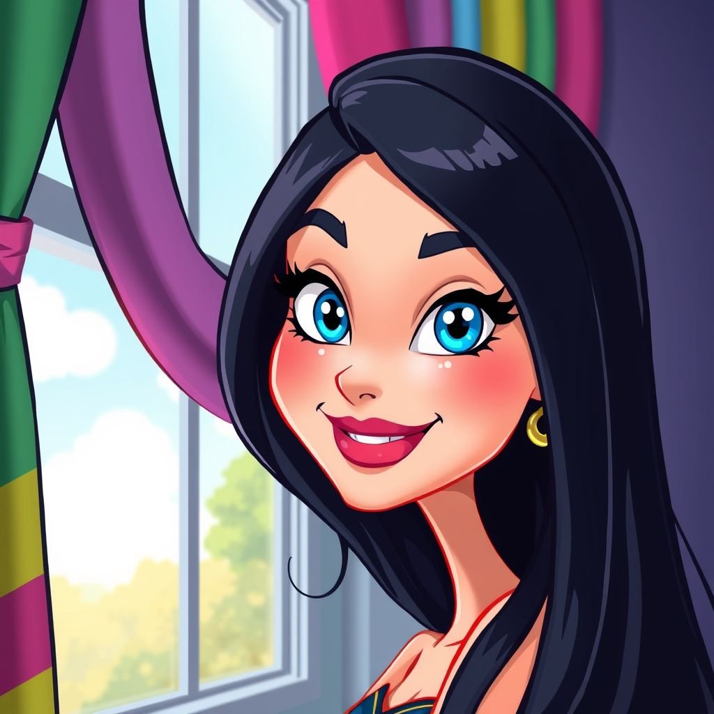 Black hair emo pony tail black boots black skirt black red eyes soft lips