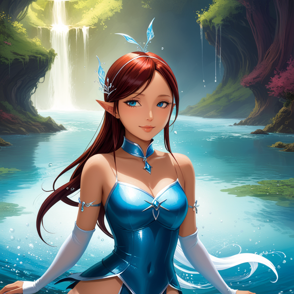 a woman in a blue corset sitting in the water