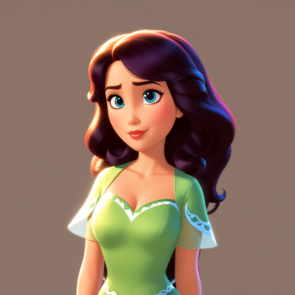 a cartoon girl in a green dress with a bow on her head