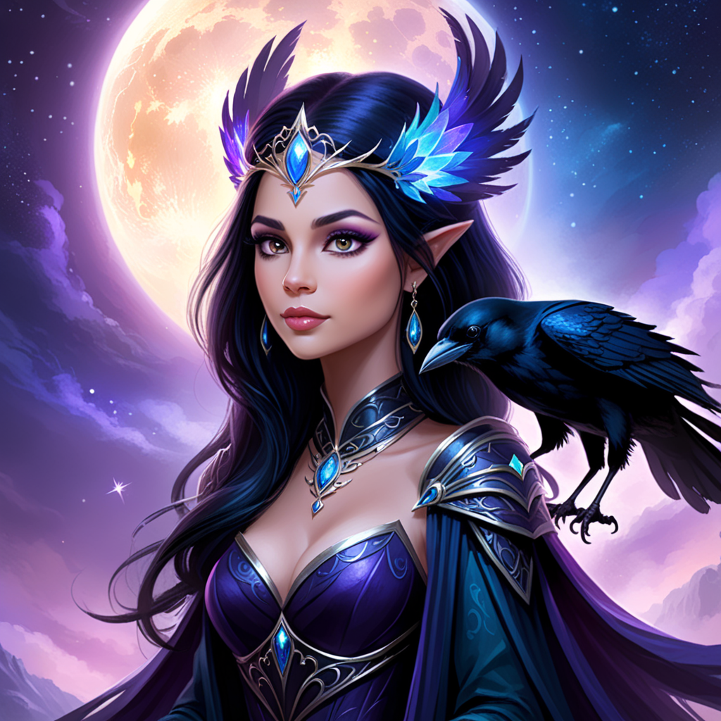 a digital painting of a woman with purple hair