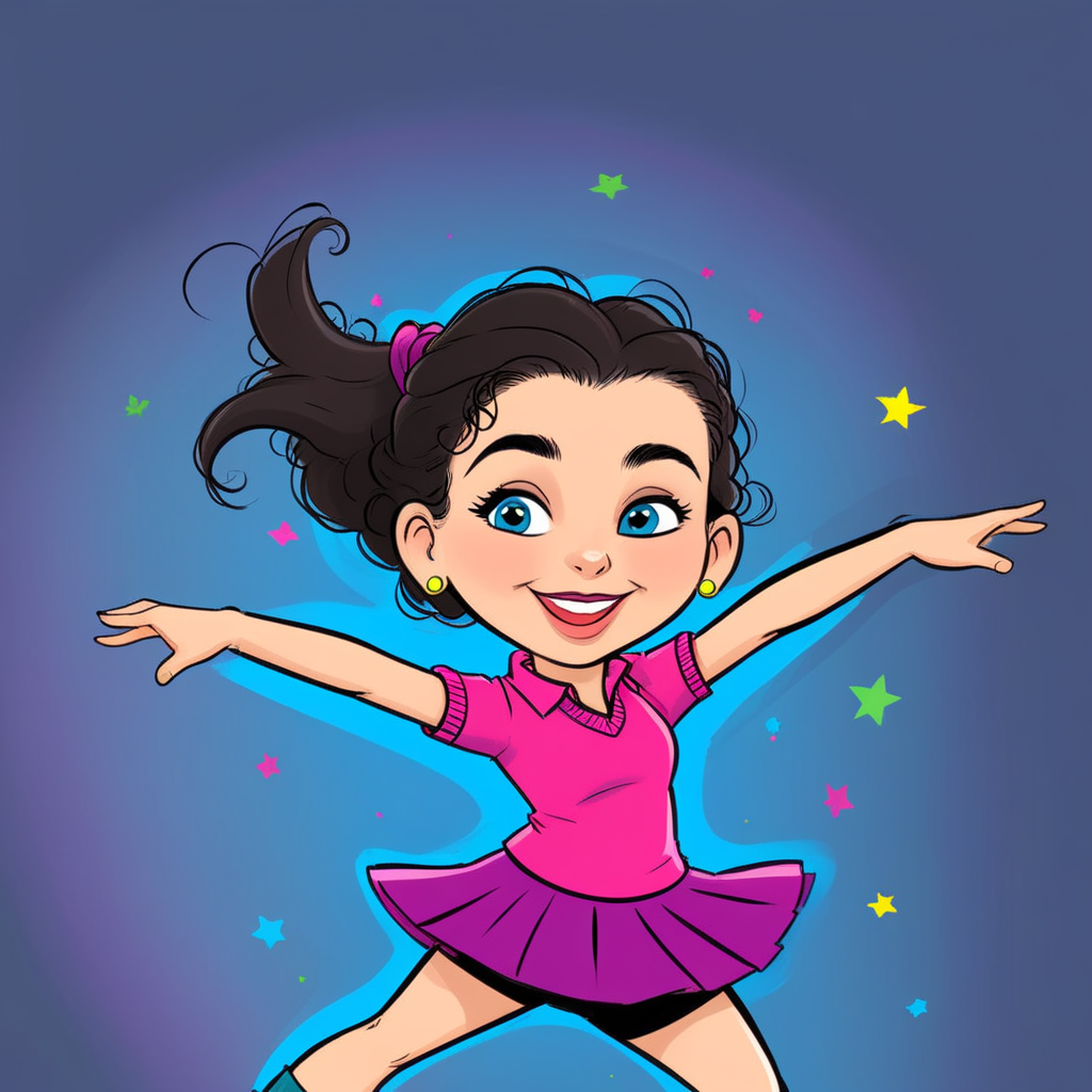 Kawaii chibi style of a teenager girl with dark brown hair and brown eyes with a chocolate lab that is a service dog