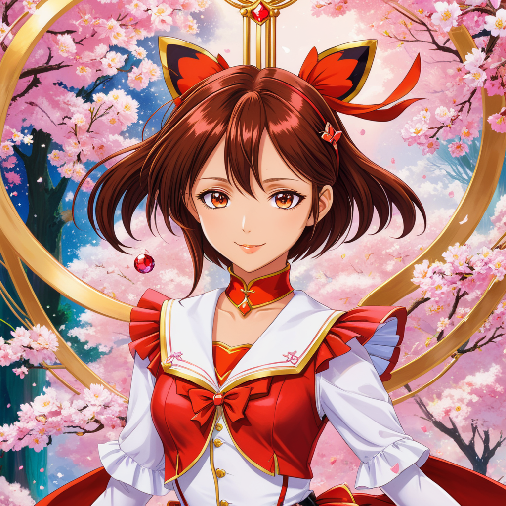 a group of anime characters standing in front of a forest