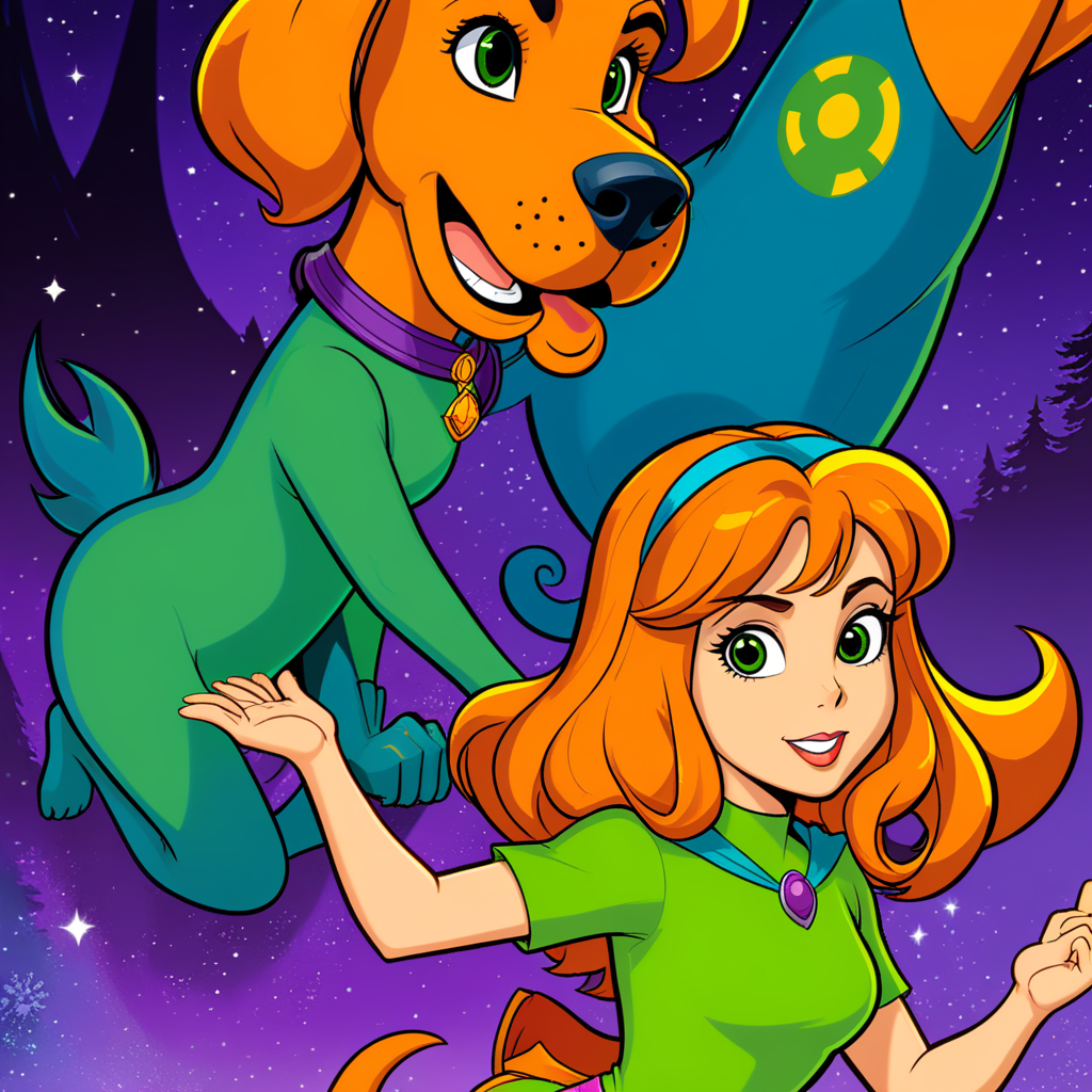 CuteKawaii chibi style of a teenager girl with dark brown hair and brown eyes with a chocolate lab that is a service dog