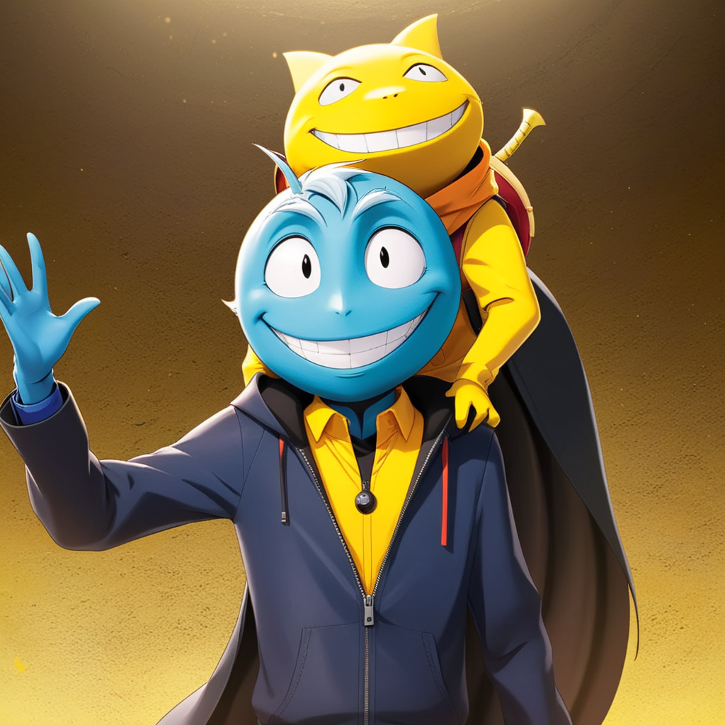 a cartoon character is holding a smiley face