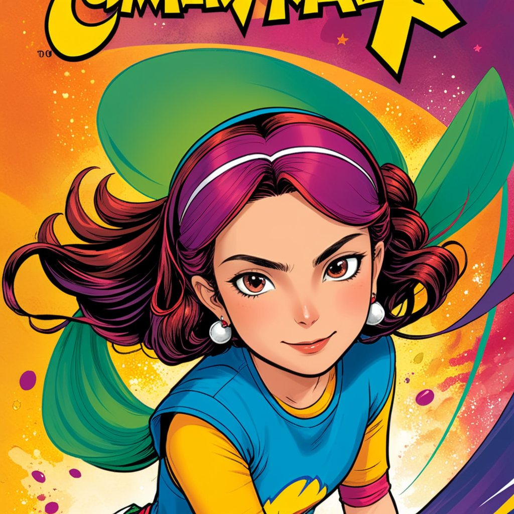 a cartoon character with a colorful background