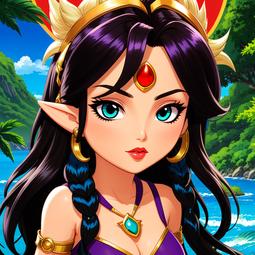 a cartoon girl with long hair wearing a blue dress