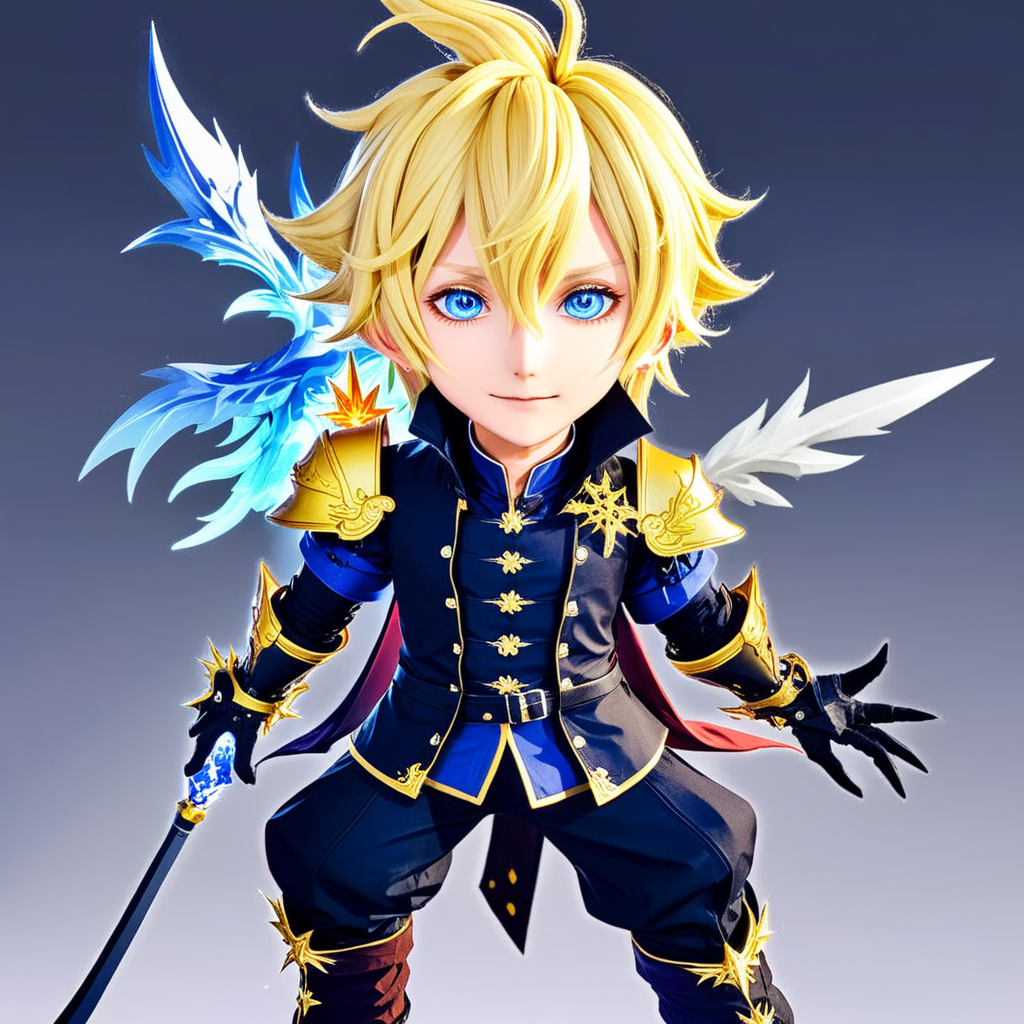 a cartoon character with a sword and wings