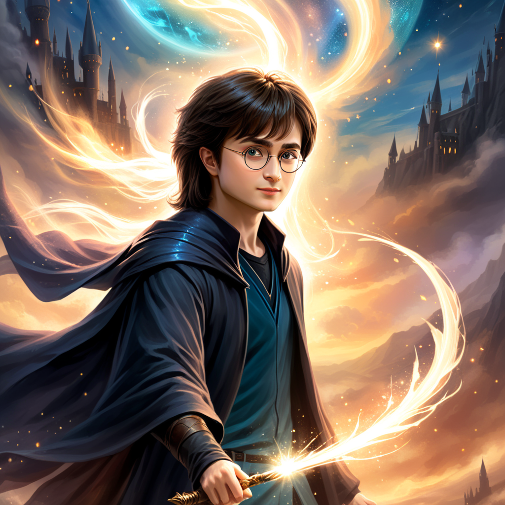 a painting of a harry potter holding a wand