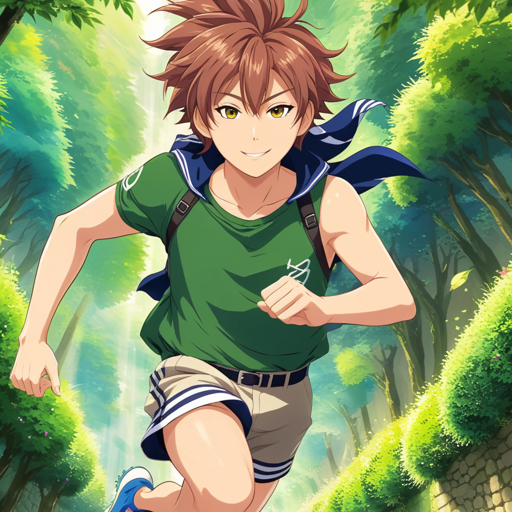 CuteKawaii chibi style of a teenager girl with dark brown hair and brown eyes with a chocolate lab that is a service dog
