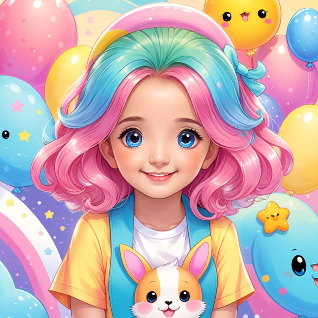 CuteKawaii chibi style of a teenager girl with dark brown hair and brown eyes with a chocolate lab that is a service dog