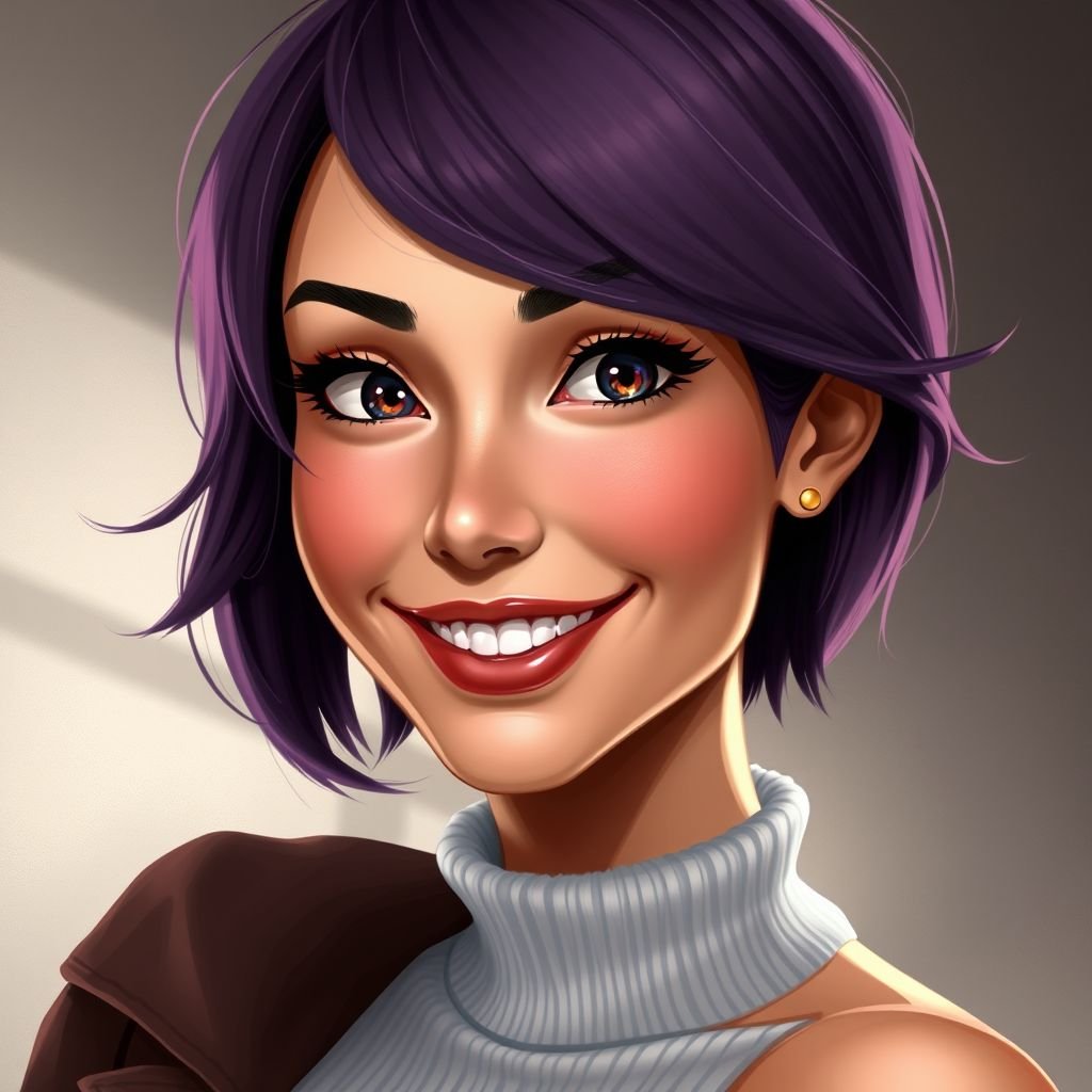 a digital painting of a woman with purple hair