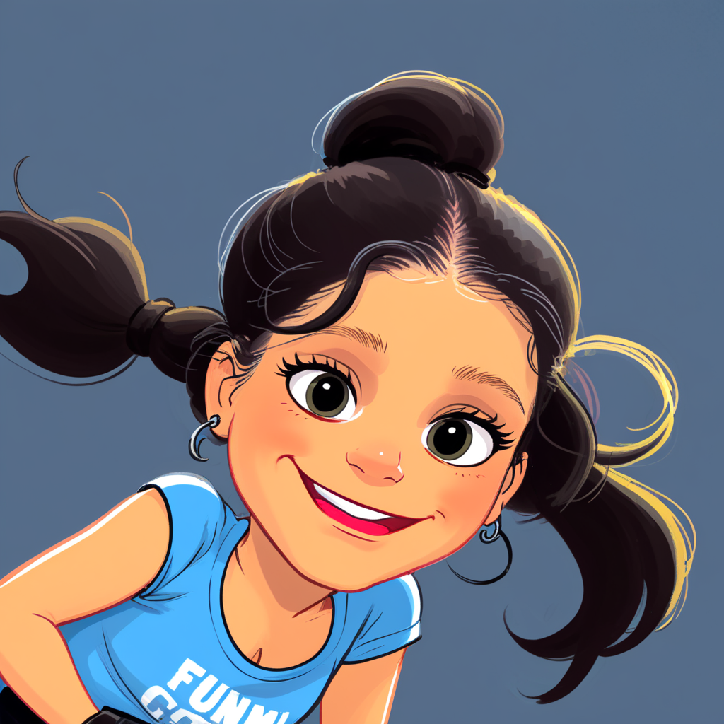 a drawing of a girl in a blue shirt