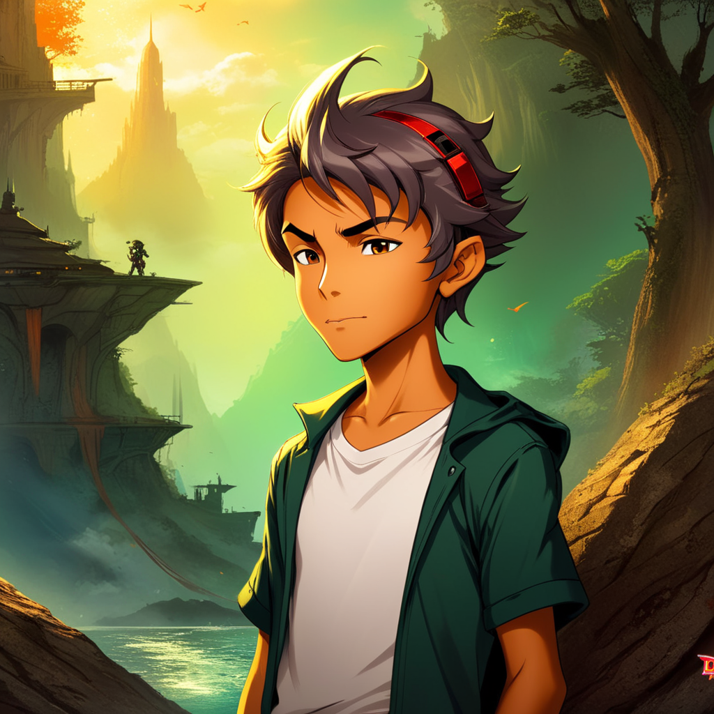 CuteKawaii chibi style of a teenager girl with dark brown hair and brown eyes with a chocolate lab that is a service dog