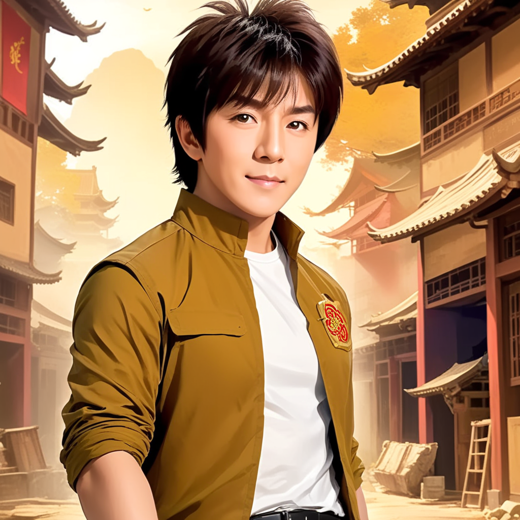 a man in a brown jacket standing in front of a building