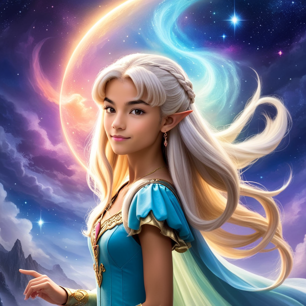 a girl with blonde hair and a blue dress
