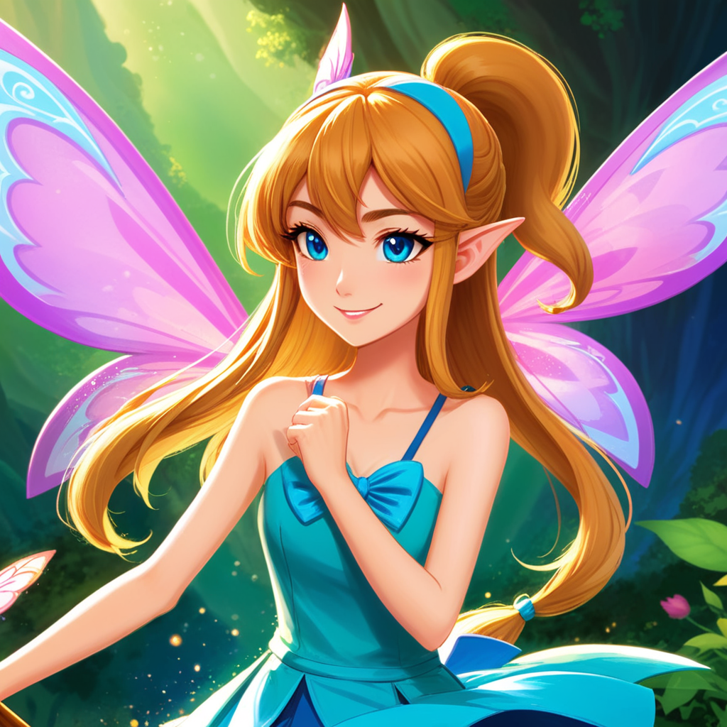 a beautiful blonde fairy in a blue dress
