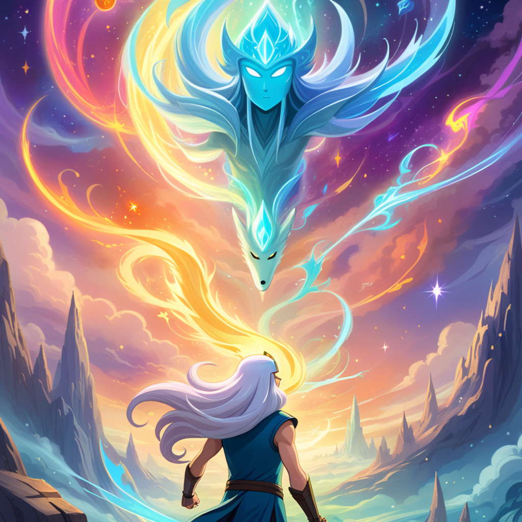 a woman in a blue dress standing in front of a sky