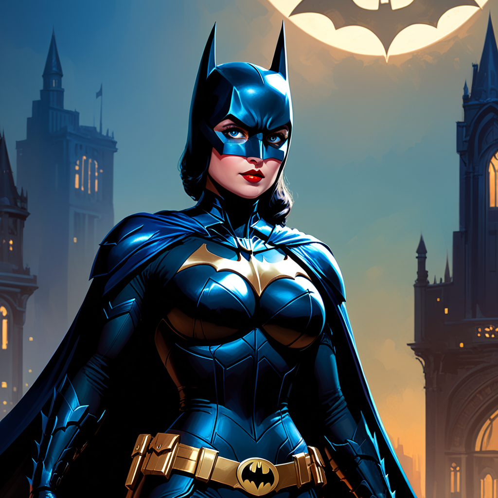 a woman in a batman costume with blue eyes