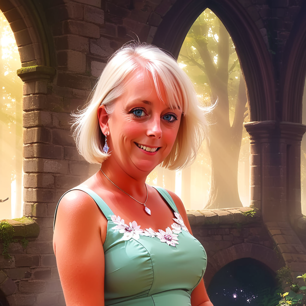 a digital painting of a woman in a blue dress