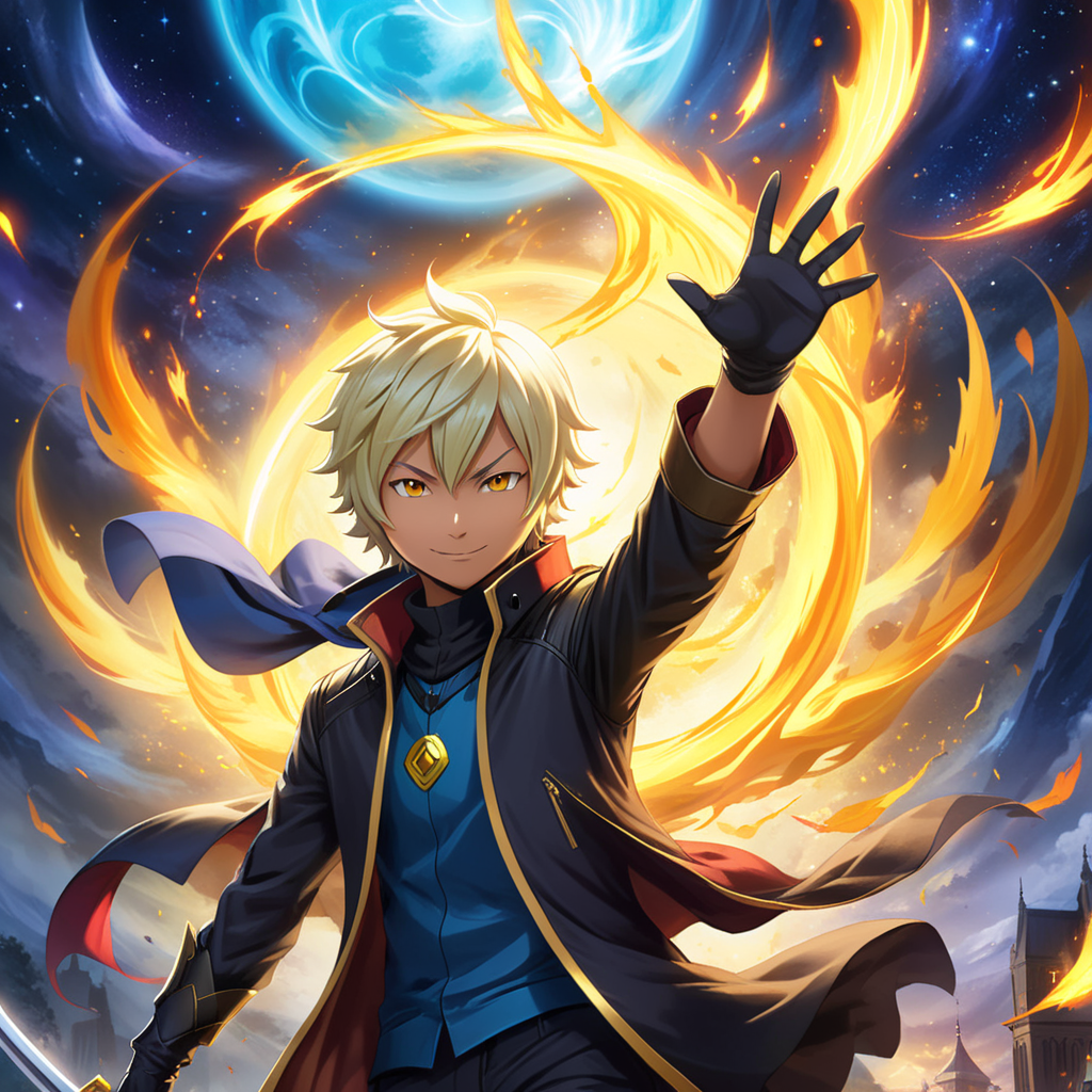 a man in a black coat and yellow hair holding a sword