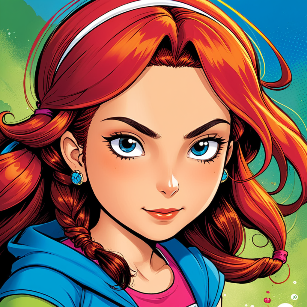CuteKawaii chibi style of a teenager girl with dark brown hair and brown eyes with a chocolate lab that is a service dog