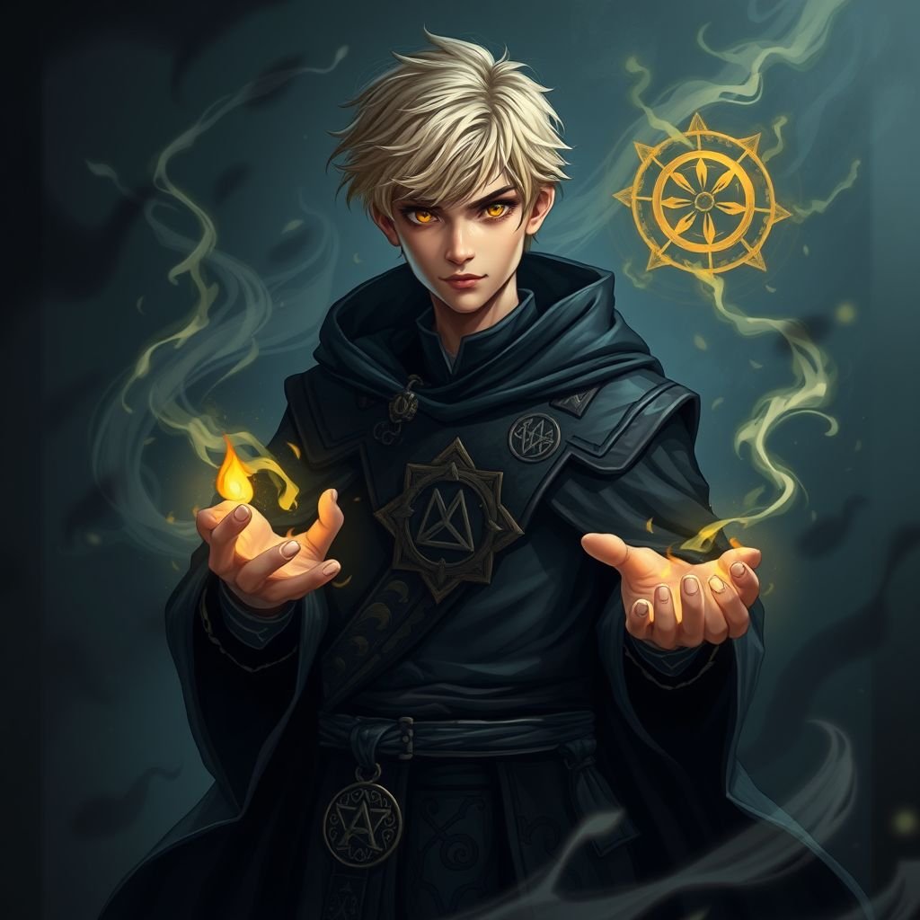 Blond hair young man with yellow eyes and as yellow mage