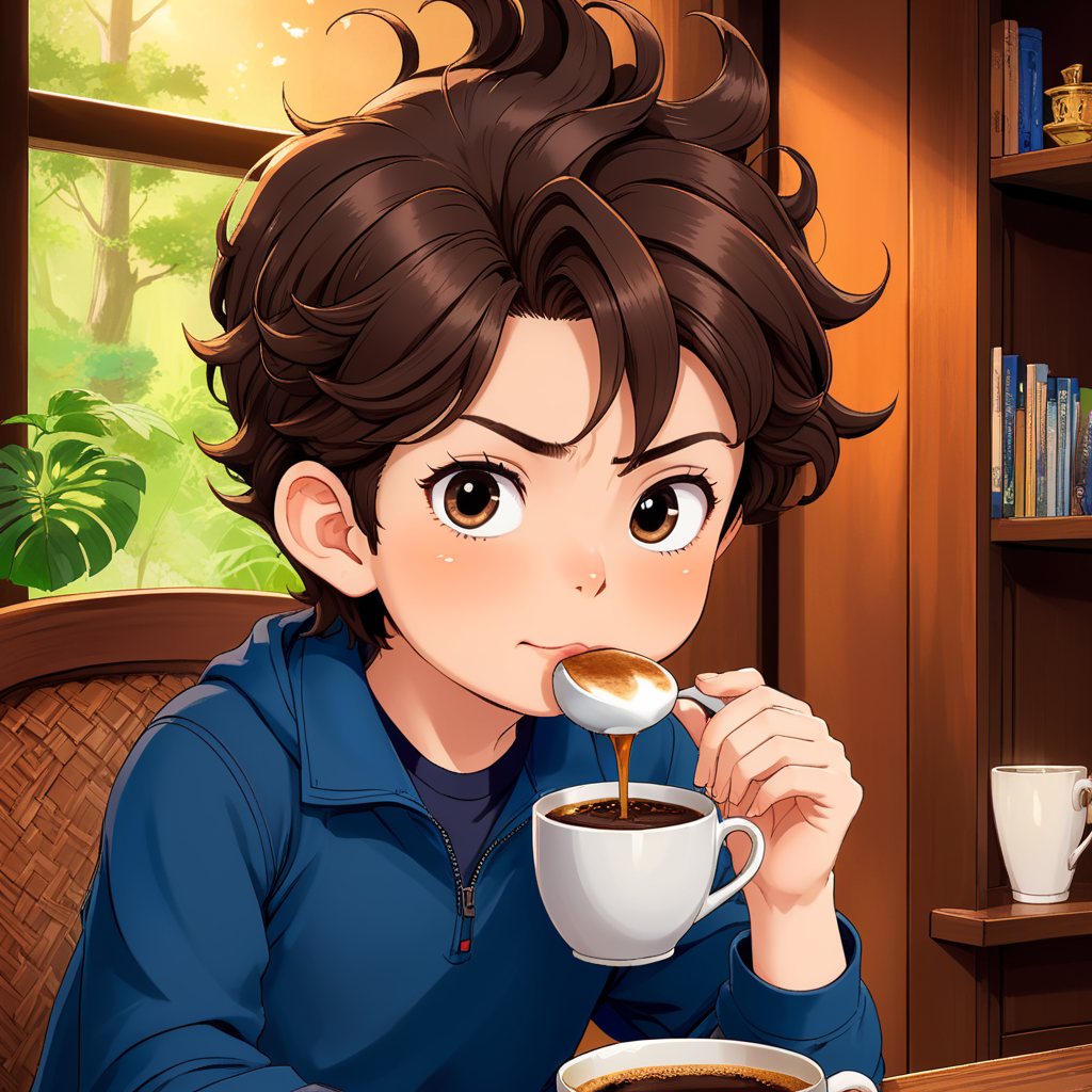 a person sitting at a table with a cup of coffee