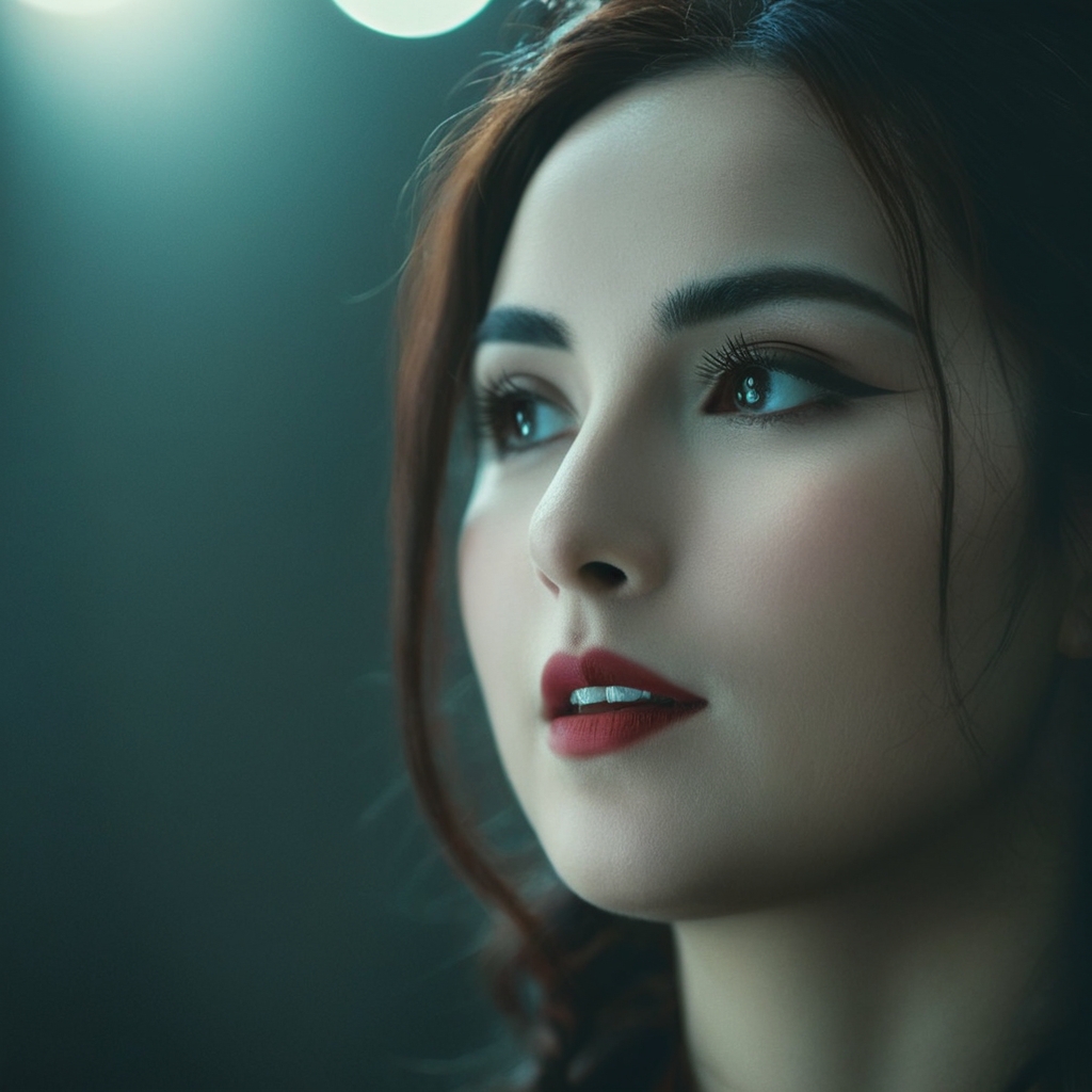 a close up of a person with a light in the background
