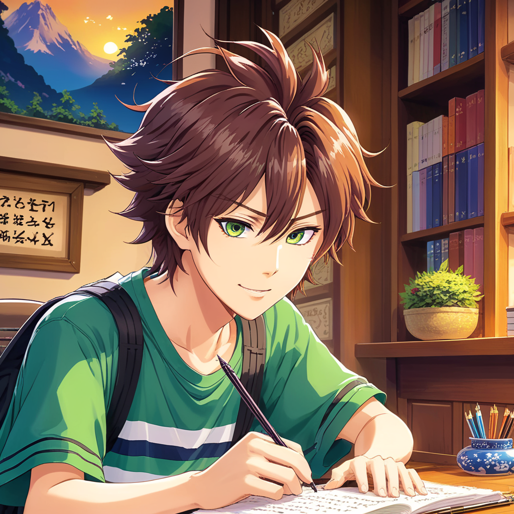 CuteKawaii chibi style of a teenager girl with dark brown hair and brown eyes with a chocolate lab that is a service dog